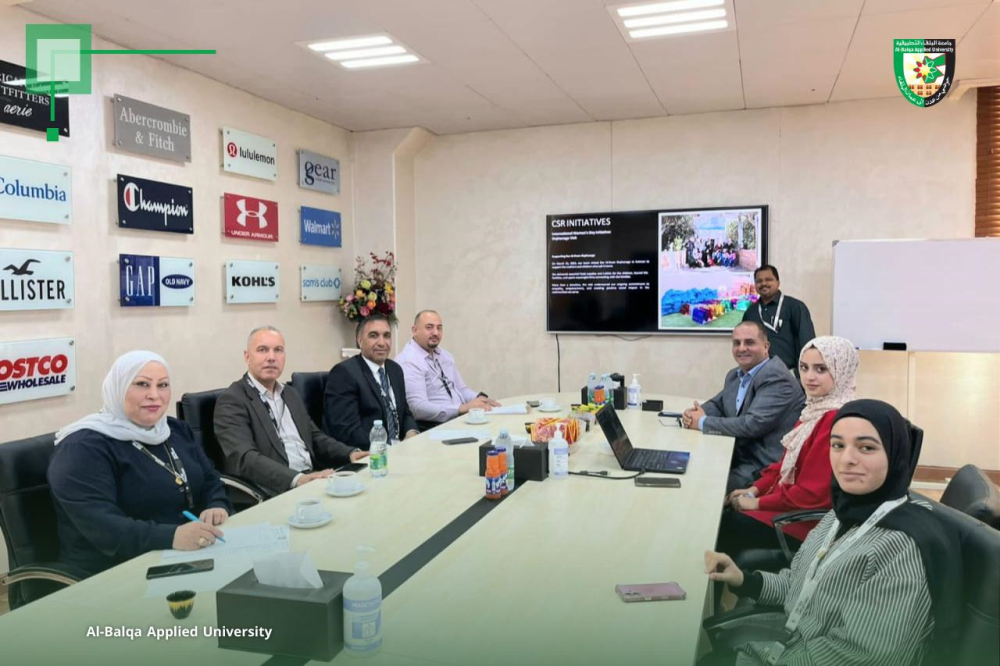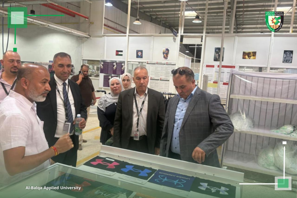 تعزيزا للشراكة المستمرة مع القطاع الصناعي قام الأستاذ الدكتور زيد العنبر نائب رئيس الجامعة للشؤون الأكاديمية والأستاذ الدكتور زيد العدوان عميد كلية الزرقاء الجامعية بزيارة علمية للشركة المتحدة للابداع لصناعة الألبسة الجاهزة حيث كان في استقبالهم الدكتور علي الحماد المدير العام للشركة.