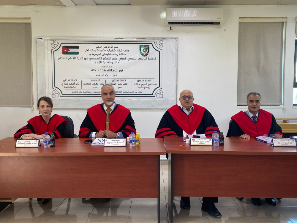 تم في مساء يوم الأربعاء 20/8/2025 ، مناقشة رسالة ماجستير للطالبة نور عبدالله محمد طه تخصص علم النفس التربوي قسم علم النفس، التربية الخاصة والموسومة بـ :