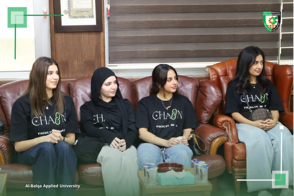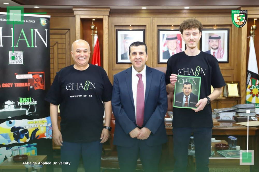أطلقت كلية الذكاء الاصطناعي في جامعة البلقاء التطبيقية مجلة "CHAIN"، في مكتب رئيس الجامعة الأستاذ الدكتور أحمد فخري العجلوني، بحضور نائب الرئيس للشؤون الإدارية وشؤون المراكز الأستاذ الدكتور خالد الزعبي، وعميد كلية الذكاء الاصطناعي الأستاذ الدكتور عمر الزعبي، والدكتورة وفاء المعايطة، والدكتور نادر سلامة، والدكتور أشرف الدباس.