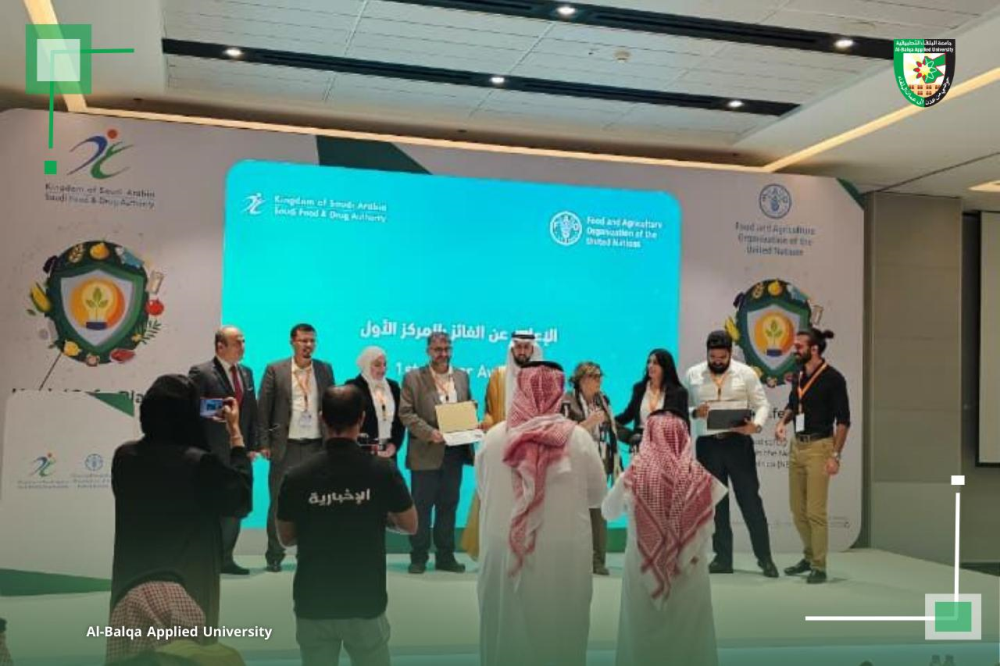 وفي هذا السياق، أشاد رئيس جامعة البلقاء التطبيقية الاستاذ الدكتور احمد فخري العجلوني بجهود الفريق الفائز، مؤكدًا أن هذا الإنجاز يمثل فخرًا للجامعة وللأردن، ويعكس تميز كوادرها الأكاديمية وطلبتها في تقديم حلول مبتكرة للتحديات العالمية. كما توجه بالشكر والتقدير إلى الهيئة العامة للغذاء والدواء بالمملكة العربية السعودية ومنظمة الفاو على تنظيم هذا الحدث الرائد، مثمنًا دورهم في دعم الابتكار وتعزيز التعاون الإقليمي.