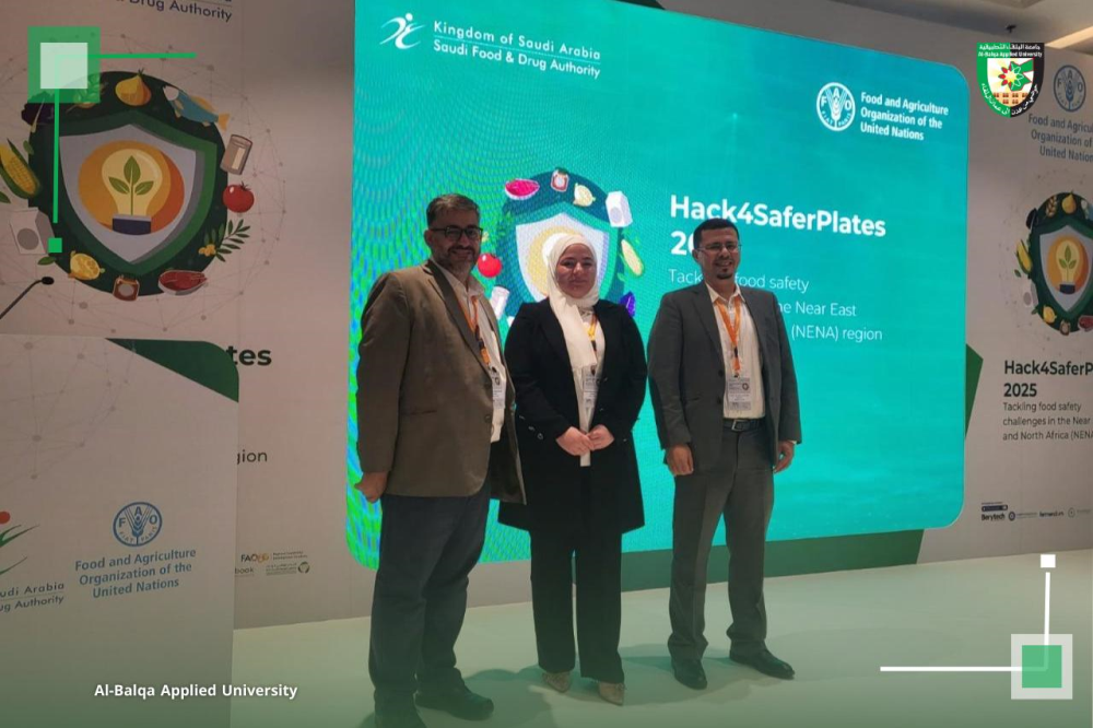 حققت كلية الزراعة التكنولوجية في جامعة البلقاء التطبيقية إنجازًا إقليميًا ودوليًا متميزًا بحصول فريقها الأكاديمي والطلابي على المركز الأول في هاكاثون نبتكر لسلامة الأغذية، الذي نظمته الهيئة العامة للغذاء والدواء في الرياض – المملكة العربية السعودية، خلال الفترة 9–10 سبتمبر، تحت مظلة مبادرة منظمة الأغذية والزراعة للأمم المتحدة (الفاو) "شبكة البحث والابتكار الإقليمي لسلامة الغذاء (RFSRIN)".