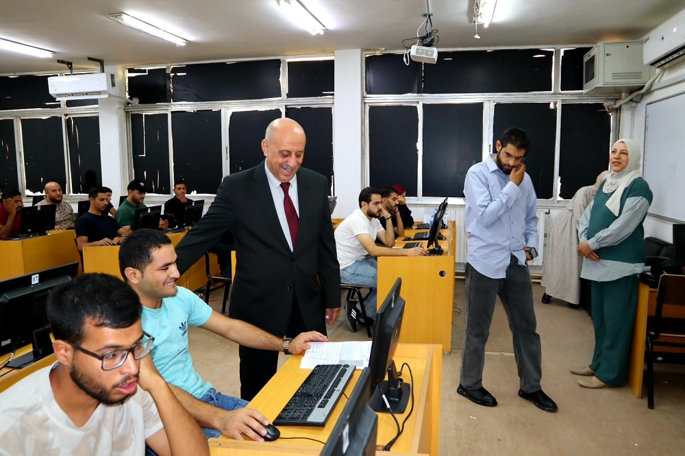 واطمأن الدكتور شقيرات خلال الجولة على سير الامتحانات والإجراءات المتخذة لضمان توفير بيئة مناسبة وآمنة للطلبة، مؤكداً حرص الجامعة والكلية على تحقيق أعلى مستويات العدالة والشفافية.