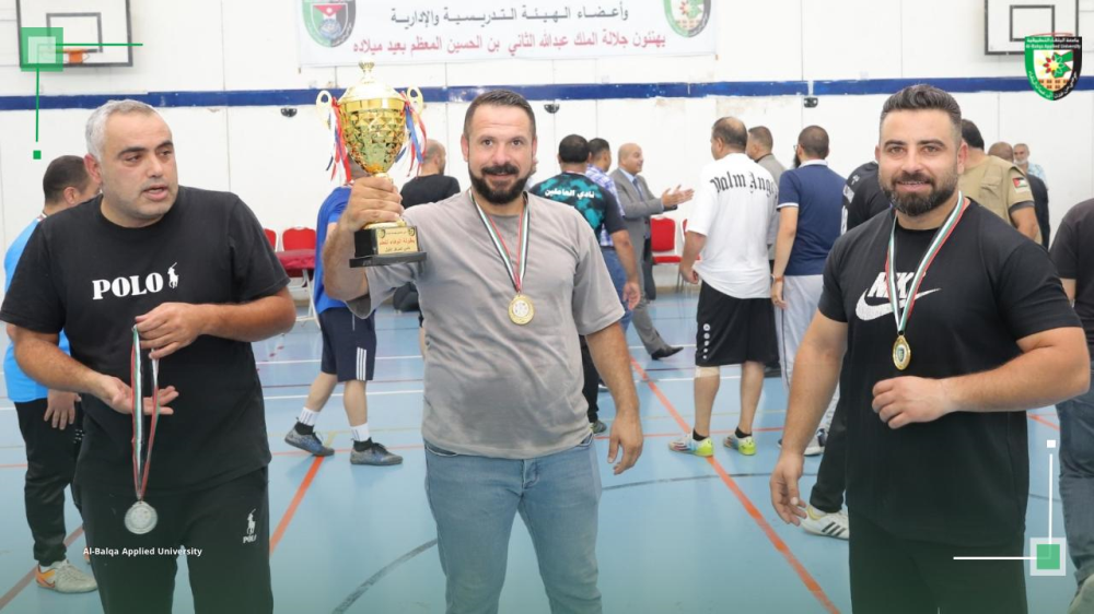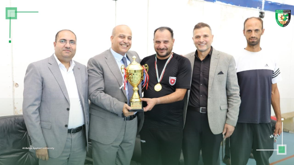 شهدت البطولة، التي أقيمت في الصالة الرياضية، حضور نائب عميد شؤون الطلبة الدكتور زيد اللامي، ورئيس نادي العاملين السيد محمود قطيشات، فيما جمعت المباراة النهائية بين فريقي وحدة الأمن وكلية السلط التقنية، وانتهت بتتويج فريق وحدة الأمن بطلاً للبطولة.