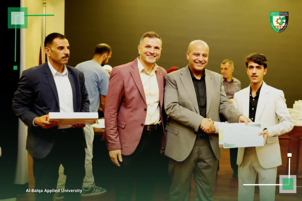 مندوبا عن رئيس جامعة البلقاء التطبيقية الأستاذ الدكتور أحمد فخري العجلوني، رعى نائب رئيس الجامعة للشؤون الادارية الاستاذ الدكتور وضاح العدوان حفل تكريم الطلبة الناجحين في امتحان الثانوية العامة للعام 2025 من أبناء وبنات العاملين في الجامعة، والذي نظمه نادي العاملين، بحضور رئيس نادي العاملين السيد محمود قطيشات وأعضاء النادي وذوي الطلبة المكرّمين.