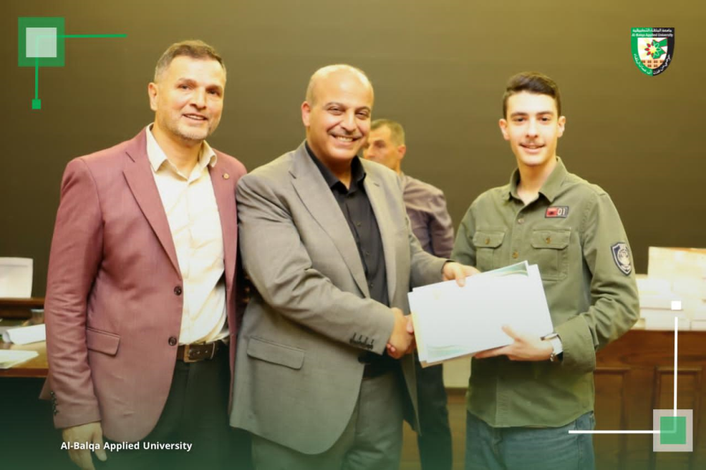 وخلال الحفل، نقل الاستاذ الدكتور وضاح العدوان تهنئة ومباركة رئيس الجامعة للطلبة الناجحين وأسرهم، معبّراً عن فخره بهذا النجاح الذي يعكس جهودهم الدؤوبة ومثابرتهم المستمرة. مؤكدا أن الجامعة تفخر بأبنائها الطلبة الذين يمثلون مستقبل الوطن، فهم الركيزة الأساسية لبناء مجتمع معرفي متطور قادر على مواجهة تحديات المستقبل والمساهمة الفاعلة في نهضة المجتمع. كما حث الطلبة على مواصلة السعي نحو التميّز العلمي والمعرفي، والاعتزاز بانتمائهم لأسرة الجامعة، والاستفادة من الفرص التعليمية والتدريبية التي توفرها الجامعة لتحقيق أهدافهم الأكاديمية والمهنية، مؤكداً أن الجامعة وبتوجيهات رئيسها ستظل داعمة لهم في جميع مراحل مسيرتهم التعليمية.