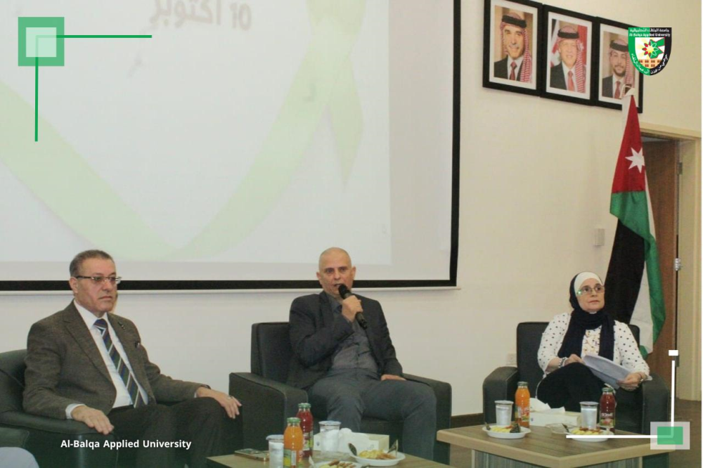 أكد عميد الكلية الأستاذ الدكتور طارق أبو هزيم كلمة ترحيبية على أهمية تعزيز الوعي بالصحة النفسية لدى الطلبة وأعضاء الهيئتين التدريسية والإدارية، مبينًا أنها جزء أساسي من سلوكياتنا اليومية وتؤثر في ترابط الأسرة واستقرار المجتمع، ودعا إلى كسر حاجز الحرج في مراجعة الأخصائيين النفسيين عند التعرض للضغوط أو المشكلات التي تؤثر على الصحة النفسية.