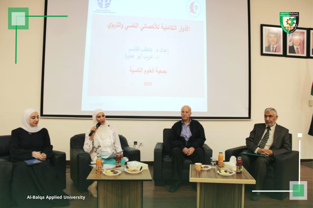 وأدار الدكتور عاطف القاسم، مدير مركز التدريب والاستشارات ورئيس جمعية العلوم النفسية في الأردن، والدكتورة عريب أبو عميرة من كلية الأميرة عالية الجامعية/جامعة البلقاء التطبيقية، حلقة نقاش بعنوان "الأدوار التكاملية للتخصصات النفسية والاجتماعية"، تطرقا خلالها إلى العلاقة بين الجانب الأكاديمي وسوق العمل وأهمية التدريب الميداني والإشراف الأكاديمي في صقل مهارات الطلبة، كما عرضت الدكتورة أبو عميرة مجالات عمل الأخصائي النفسي في التشخيص والعلاج والإرشاد النفسي والتعاون مع الأسرة والمعلمين، فيما بيّن الدكتور القاسم الأدوار التكاملية للأخصائي النفسي في الجوانب العلاجية والوقائية والإكلينيكية وإدارة الحالات وتطوير الأداء وإجراء الاختبارات النفسية الحديثة.