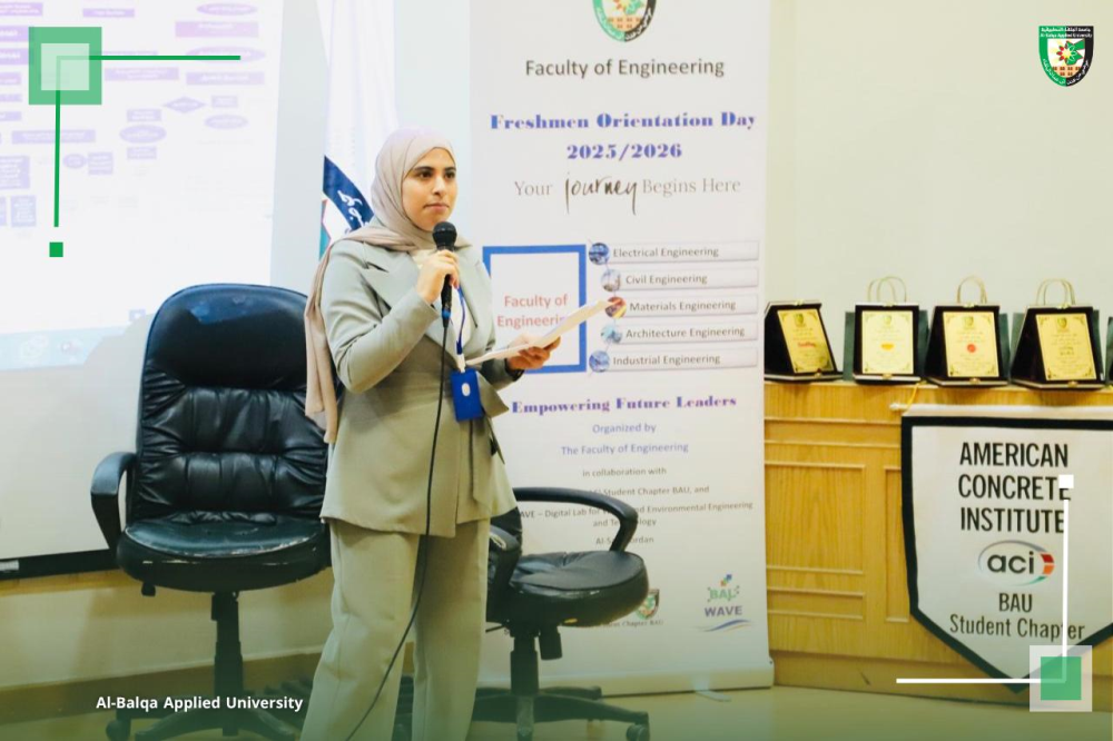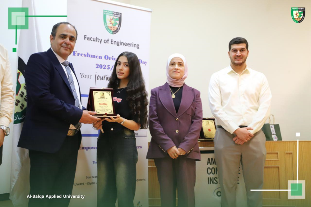 مندوبًا عن رئيس جامعة البلقاء التطبيقية الأستاذ الدكتور أحمد فخري العجلوني، رعى عميد شؤون الطلبة الأستاذ الدكتور خلف الختاتنة حفل استقبال الطلبة الجدد الذي نظمته كلية الهندسة وبالتعاون مع فريق “سول تيم” وفريق ACI، بمناسبة بدء العام الجامعي الجديد، بحضور عميد كلية الهندسة الأستاذ الدكتور محمد رسول الحديدي، ونائب العميد للشؤون الأكاديمية والإدارية الدكتور محمد الرواشدة، ونائب العميد لشؤون الجودة والاعتماد والتصنيفات الدوليه الدكتور ناصر المناصير، ومساعد العميد للشؤون الطلابية المهندسة ابتهال مشعل، إضافةً إلى رؤساء الأقسام الأكاديمية وأعضاء الهيئتين التدريسية والإدارية، وجمع غفير من الطلبة.