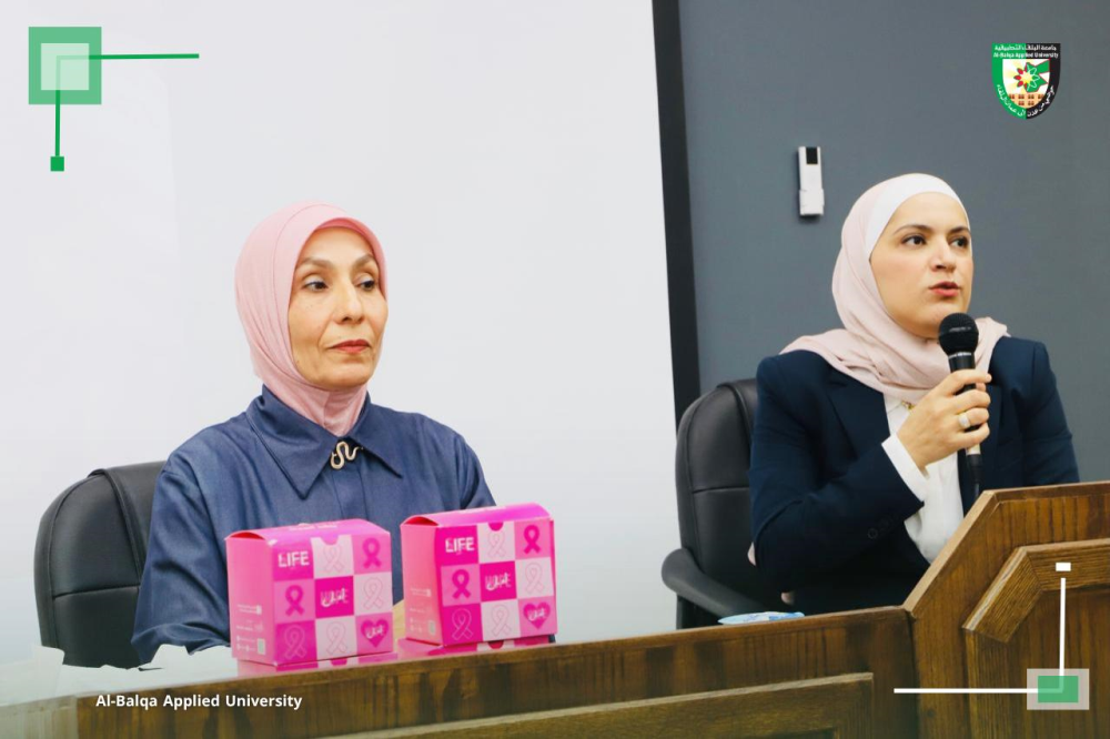 انسجامًا مع توجيهات رئيس الجامعة الأستاذ الدكتور أحمد فخري العجلوني بضرورة المشاركة في مختلف النشاطات والفعاليات التي تخدم المجتمع، وحرص الجامعة على تعزيز التواصل مع المجتمع المحلي وتثقيفه بأهم القضايا الصحية التي تمس حياة المواطن، نظّمت كلية الأعمال ورشة توعوية بعنوان “التوعية بسرطان الثدي”، وذلك تحت رعاية عميد الكلية الأستاذ الدكتور محمد سليمان النسور، ضمن فعاليات شهر أكتوبر للتوعية بسرطان الثدي.