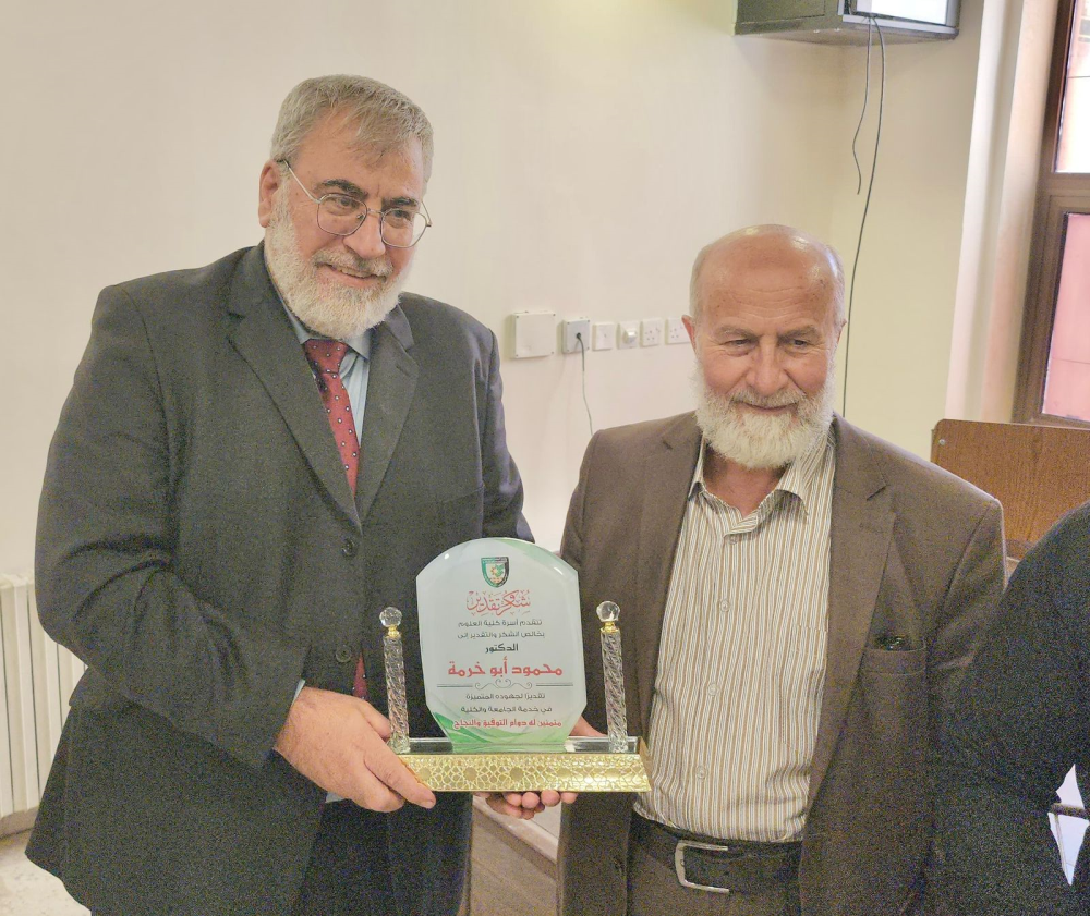 أقامت كلية العلوم في جامعة البلقاء التطبيقية حفلاً لتكريم الزميل الدكتور محمود أبو خرمة من قسم الفيزياء بمناسبة بلوغه سن التقاعد، بعد مسيرة حافلة بالعطاء في مجالات التعليم والبحث العلمي وخدمة الجامعة.