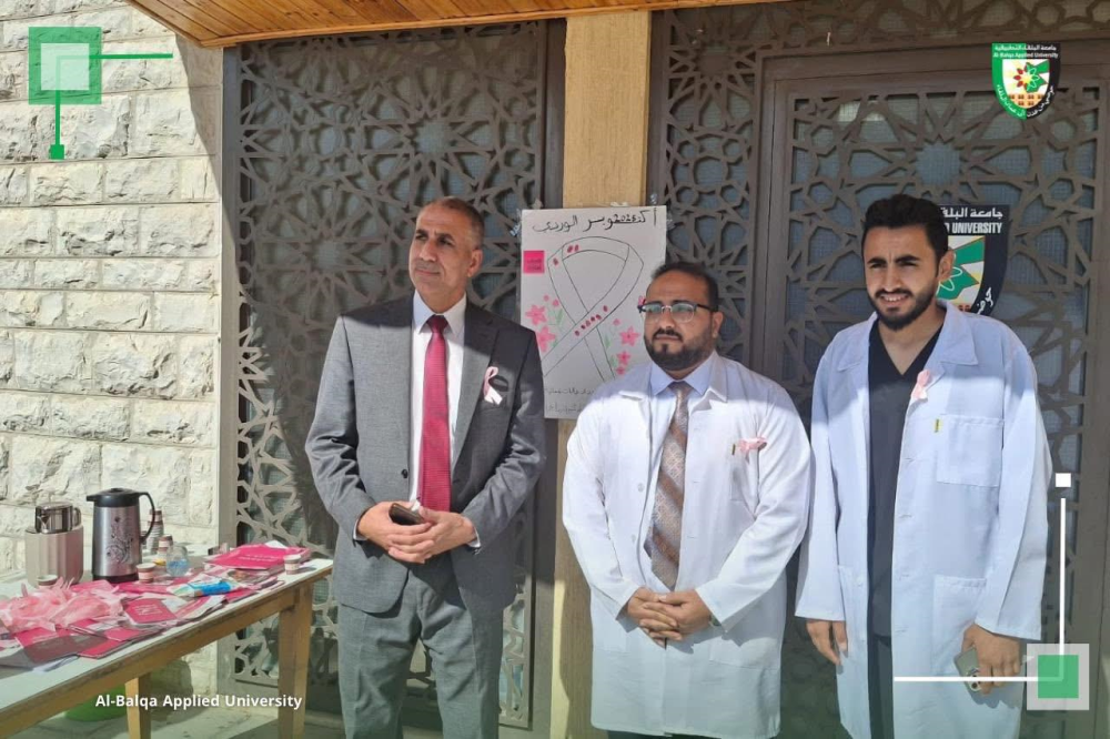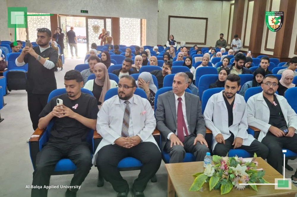 ضمن توجيهات رئيس جامعة البلقاء التطبيقية الأستاذ الدكتور أحمد فخري العجلوني الهادفة إلى تعزيز دور الجامعة في خدمة المجتمع المحلي ونشر الوعي الصحي بين الطلبة وأفراد المجتمع، نظّم طلبة مبادرة "إبداع وتمكين" بالتعاون مع قسم العلوم التطبيقية/ تخصص التمريض وعيادة كلية عجلون الجامعية نشاطًا توعويًا حول الكشف المبكر عن سرطان الثدي، وذلك في قاعة الشهيد محمد العزام.