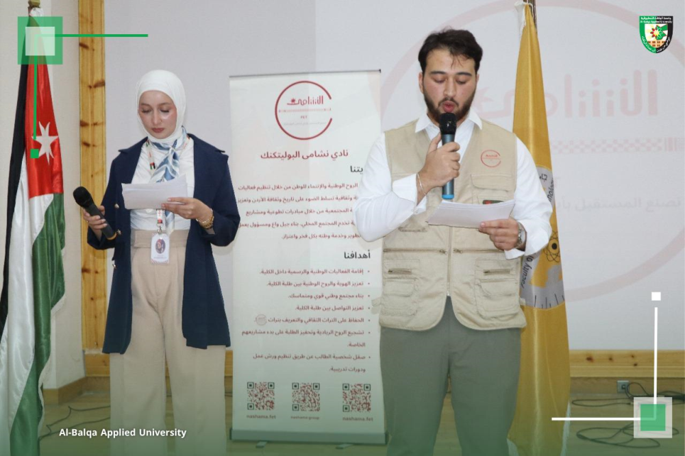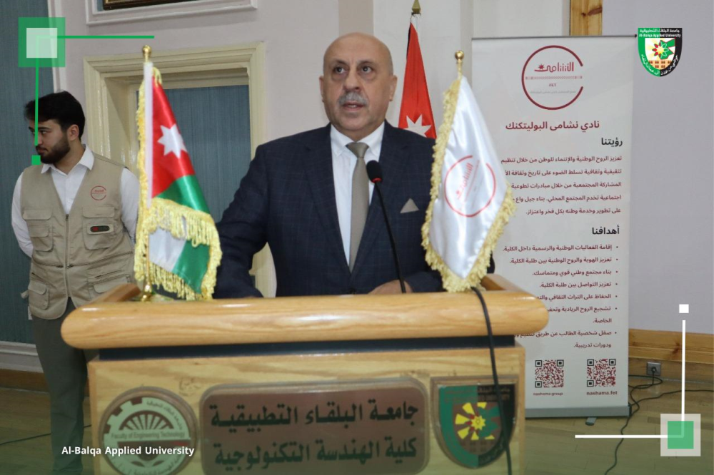 كما شدد على أن كلية الهندسة التكنولوجية، بصفتها أحد الصروح الأكاديمية المتميزة في جامعة البلقاء التطبيقية – شمس الجامعات – ستظل منارةً للعلم والمعرفة، ترفد الوطن بالكفاءات المؤهلة جيلاً بعد جيل، تحت ظل الراية الهاشمية وقيادة جلالة الملك عبد الله الثاني ابن الحسين المعظم، حفظه الله ورعاه.