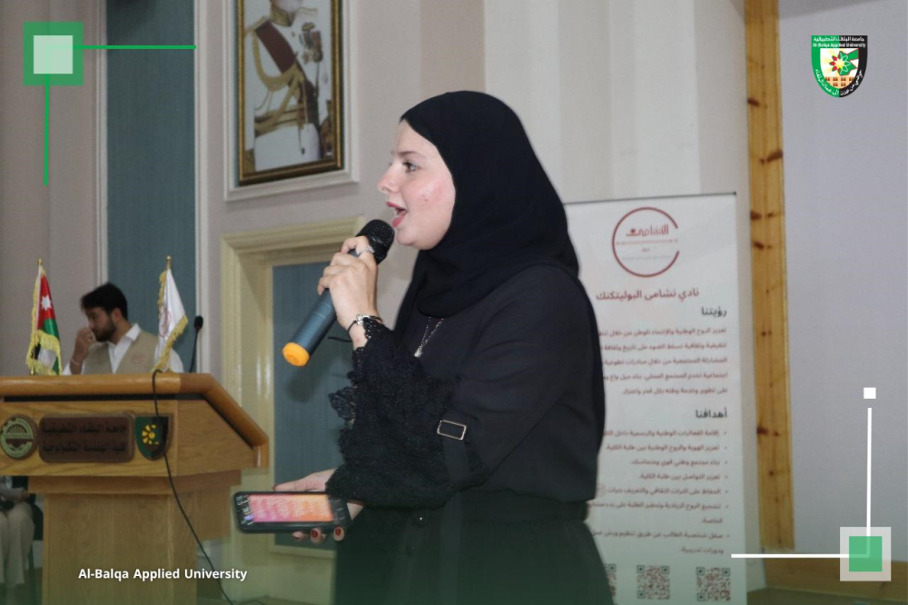 كما ألقى الدكتور يزن الزعبي، مساعد العميد للشؤون الطلابية، كلمة أكد فيها حرص قسم الشؤون الطلابية على دعم الطلبة في مختلف المجالات الأكاديمية واللامنهجية، من خلال رعاية الأندية الطلابية وتشجيع المواهب، وتوفير الفرص التي تسهم في تعزيز الإبداع والابتكار بينهم.