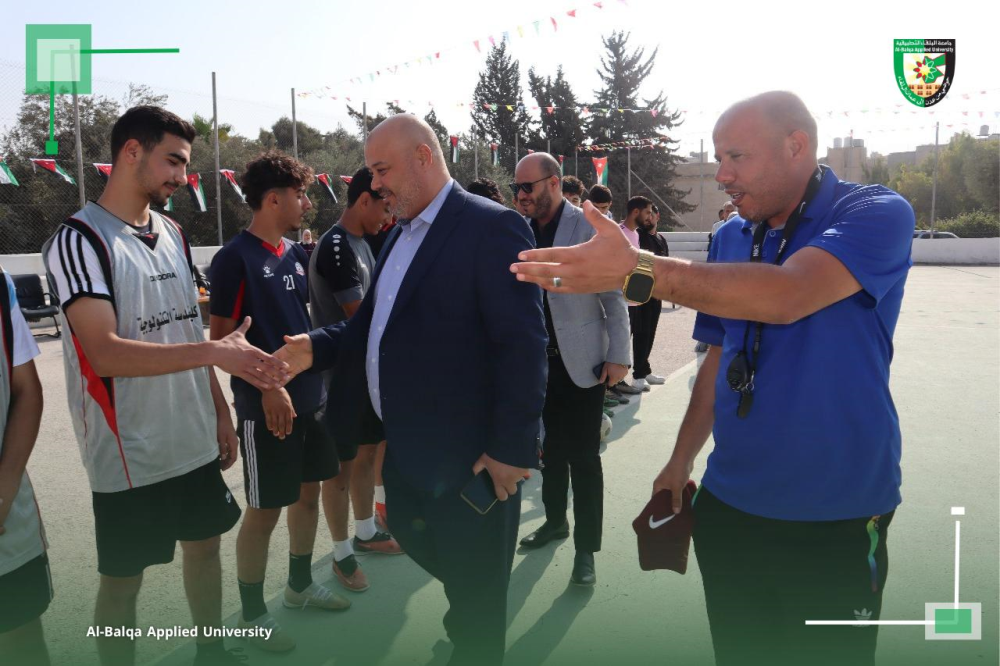 بتوجيهات من رئيس جامعة البلقاء التطبيقية الأستاذ الدكتور أحمد فخري العجلوني، ونيابةً عن عميد كلية الهندسة التكنولوجية الأستاذ الدكتور عبدالرزاق الشقيرات، تابع نائب العميد للشؤون الإدارية والمالية الدكتور أحمد الشرادقة مجريات بطولة خماسي كرة القدم للطلبة، التي نظّمتها الشؤون الطلابية في الكلية / قسم الأنشطة – النشاط الرياضي بمناسبة انطلاق العام الدراسي الجديد، بإشراف مساعد العميد للشؤون الطلابية الدكتور يزن الزعبي، وبمشاركة فرق من مختلف الأقسام الأكاديمية في الكلية.