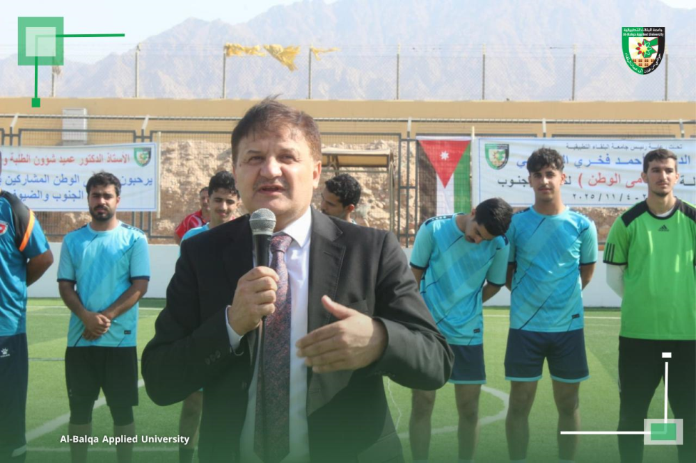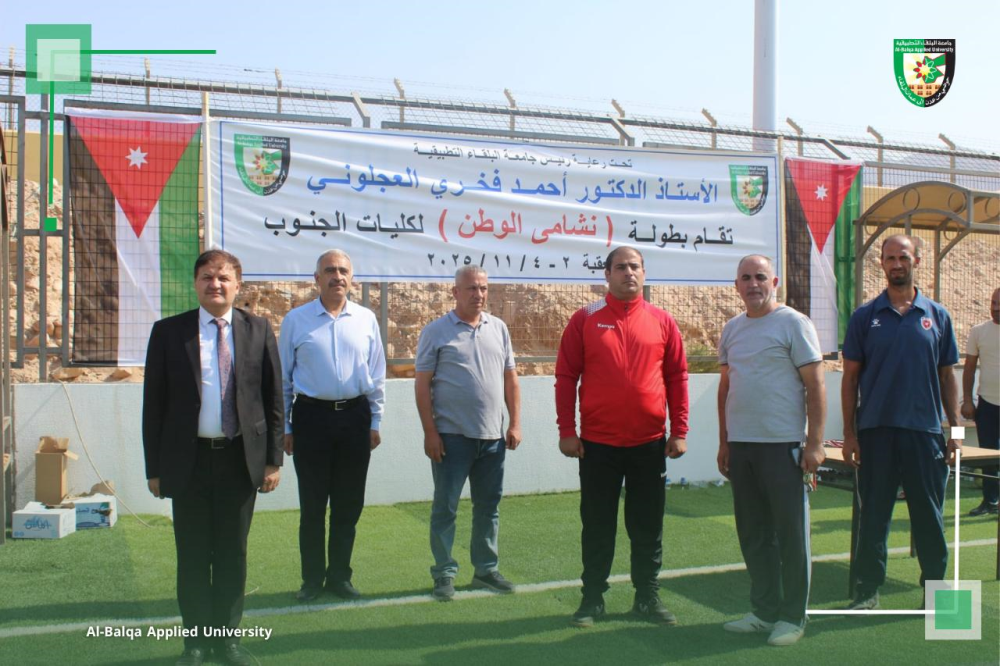 برعاية رئيس جامعة البلقاء التطبيقية الأستاذ الدكتور أحمد فخري العجلوني، نظّمت عمادة شؤون الطلبة / دائرة النشاط الرياضي بطولة "نشامى الوطن" لخماسي كرة القدم لكليات الجنوب، وذلك ضمن فعاليات استقبال الطلبة المستجدين للعام الجامعي 2025/2026 في مدينة العقبة.