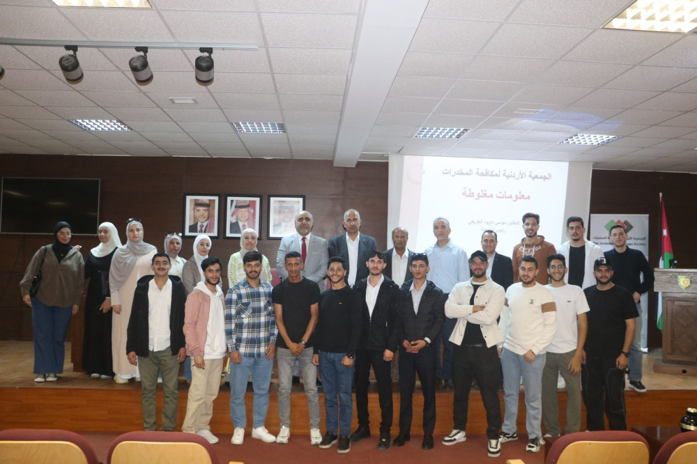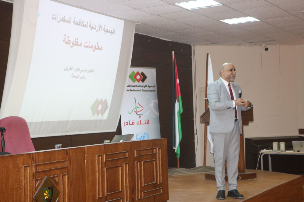 وقدم المحاضرة الدكتور موسى داوود الطريفي، رئيس الجمعية الأردنية لمكافحة المخدرات، حيث تناول أبرز المفاهيم والمعلومات المغلوطة المنتشرة بين فئة الشباب حول المخدرات، وبيّن مخاطرها الصحية والنفسية والاجتماعية، داعياً إلى تعزيز الوعي والمسؤولية المجتمعية في محاربة هذه الآفة.