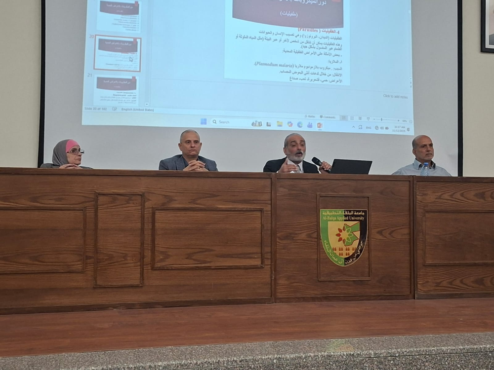 انطلاقًا من رؤية ورسالة كلية الأميرة عالية الجامعية / جامعة البلقاء التطبيقية في تحقيق الريادة والتميز في البرامج التعليمية وخدمة المجتمع المحلي، والبحث العلمي التطبيقي وبحضور عميد الكلية الأستاذ الدكتور طارق زياد أبو هزيم نظّم قسم العلوم الاجتماعية والتطبيقية/ اللجنة الثقافية وبالتعاون مع قسم التطوير والجودة/شعبة خدمة المجتمع المحلي فعالية علمية بعنوان (الأمراض الميكروبية المعدية والتحديات العالمية المعاصرة) قدمها الدكتور محمود سمور الكاتب والباحث في مجال علم الأحياء الدقيقة.
