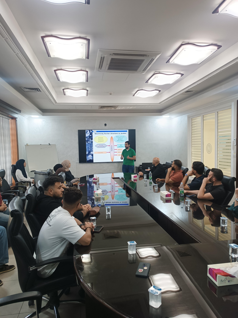 رافق الطلبة في الزيارة كل من الدكتور محمد العثامنه (منسقاً) والدكتور أشرف بني أحمد من قسم الهندسة الكهربائية، وكان في استقبال الوفد في مركز المراقبة المهندس ناصر الدهون.