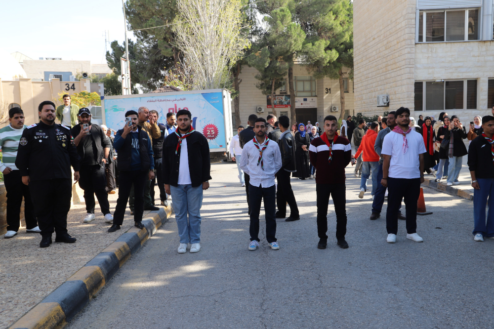 واستُهلّت الفعالية بمراسم رفع العلم التي قدمتها جوالة جامعة البلقاء بكفاءة وانضباط، ما عكس جاهزيتهم وروحهم الكشفية ورسّخ قيم الانتماء والولاء الوطني.