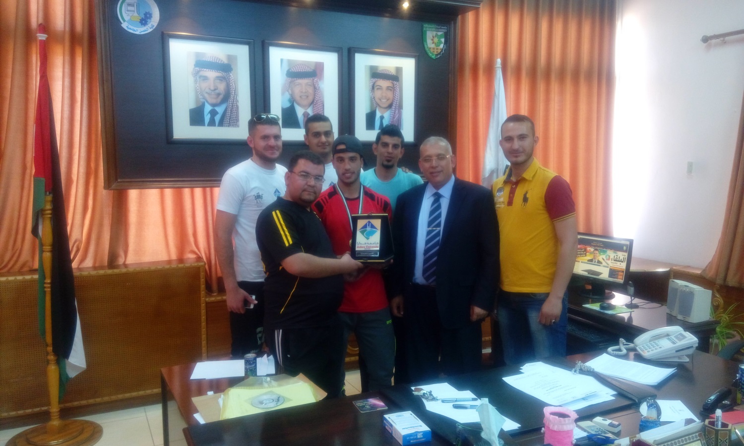 وسلم الدكتور شكري مراشدة رئيس هيئة المديرين راعي الفعاليات درع جامعة جدارا لمندوب الكلية ومنسق الوفد المشارك تقديرا وعرفانا لدور كلية الحصن الجامعية في الأنشطة والفعاليات الرياضية على المستوى المحلي وللمشاركة المتميزة في فعاليات سباق الضاحية.