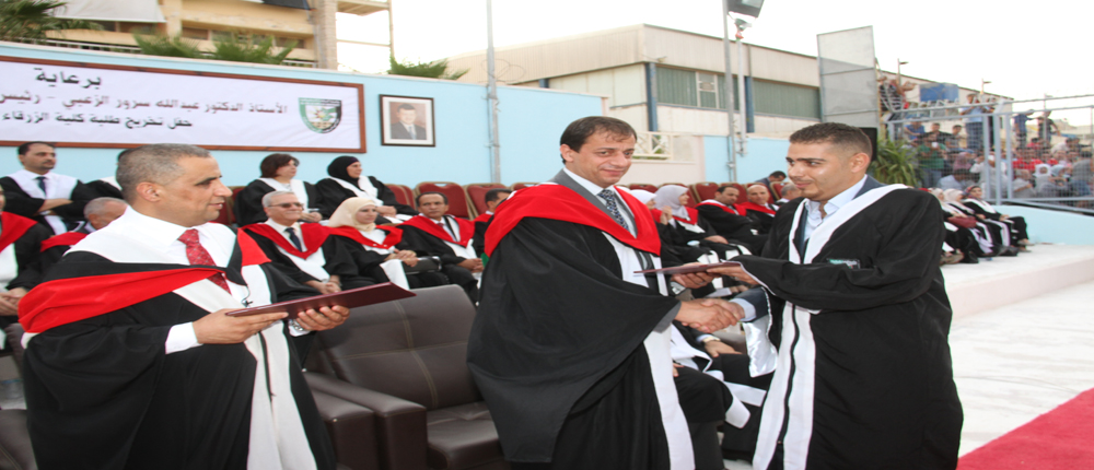 مندوبا عن الاستاذ الدكتور عبدالله سرور الزعبي رئيس جامعة البلقاء التطبيقية رعى الاستاذ الدكتور زيد عضيبات نائب الرئيس للشؤون الاكاديمية حفل تخريج الفوج الثالث عشر من حملة الشهادة الجامعية ( البكالوريوس ) والفوج السادس والثلاثين من حملة الشهادة الجامعية المتوسطة ( الدبلوم ) من طلبة كلية الزرقاء الجامعية بحضور الاستاذ الدكتور محمد شطناوي عميد الكلية واعضاء الهيئة التدريسية في الكلية وجمع غفير من ذوي الخريجين.