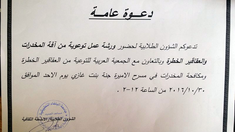 إعــلان هــام لطلبة جامعة البلقاء التطبيقية بواسطة