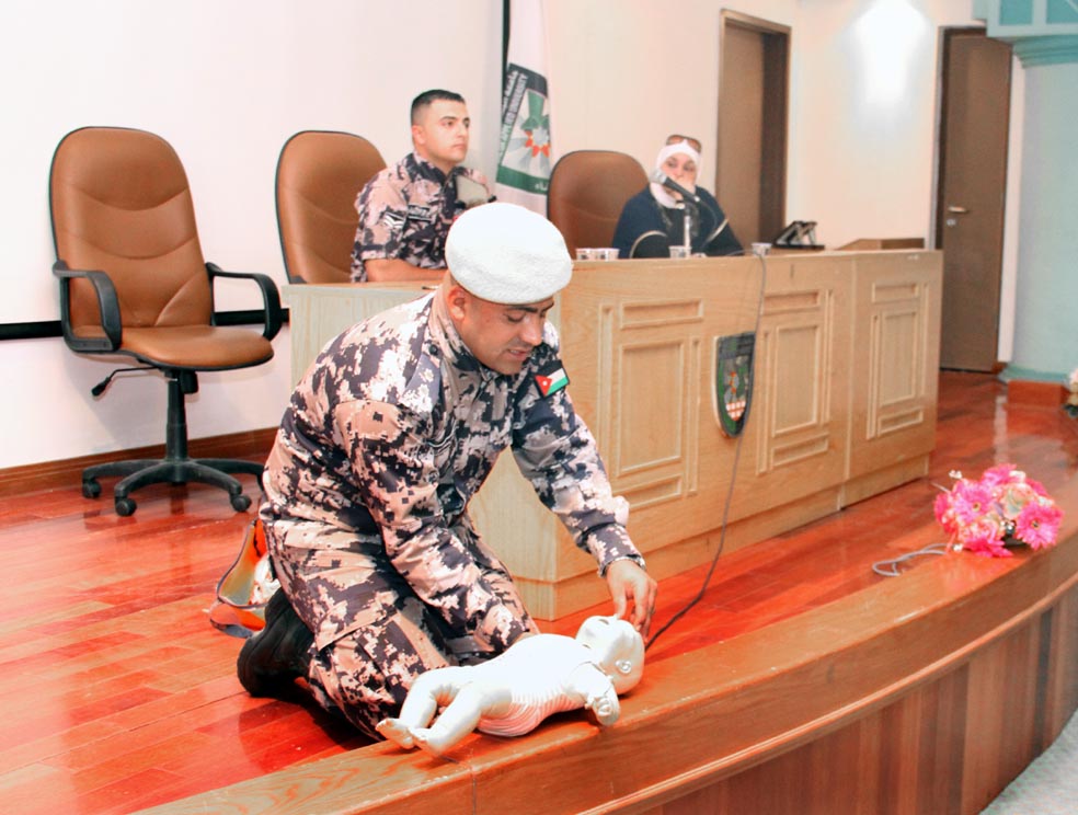 الورشة التي تهدف الى زيادة الوعي والمعرفة بالمهارات اللازمة للسلامة العامة عند الموظفين تضمنت محاضرات تثقيفية ومعلومات توعوية حول مواضيع السلامة العامة والاسعافات الاولية وكيفية التعامل مع حالات الاختناق واطفاء الحرائق ،واستعرض الملازم هاشم ابو رمان نشاة الدفاع المدني في الاردن مشيرا الى اهمية الجهاز من خلال الواجبات والمهام التي تناط به وتطرق ابو رمان الى الهدف السامي لجهاز الدفاع المدني والمتمثل في المحافظة على ارواح المواطنين والحفاظ على مقدراتهم لافتا الى ان جهاز الدفاع المدني يوظف دوما الحس الانساني الذي يساهم في تجسيد رسالة الجهاز في القيام بواجباته الانسانية والعملية على حد سواء.