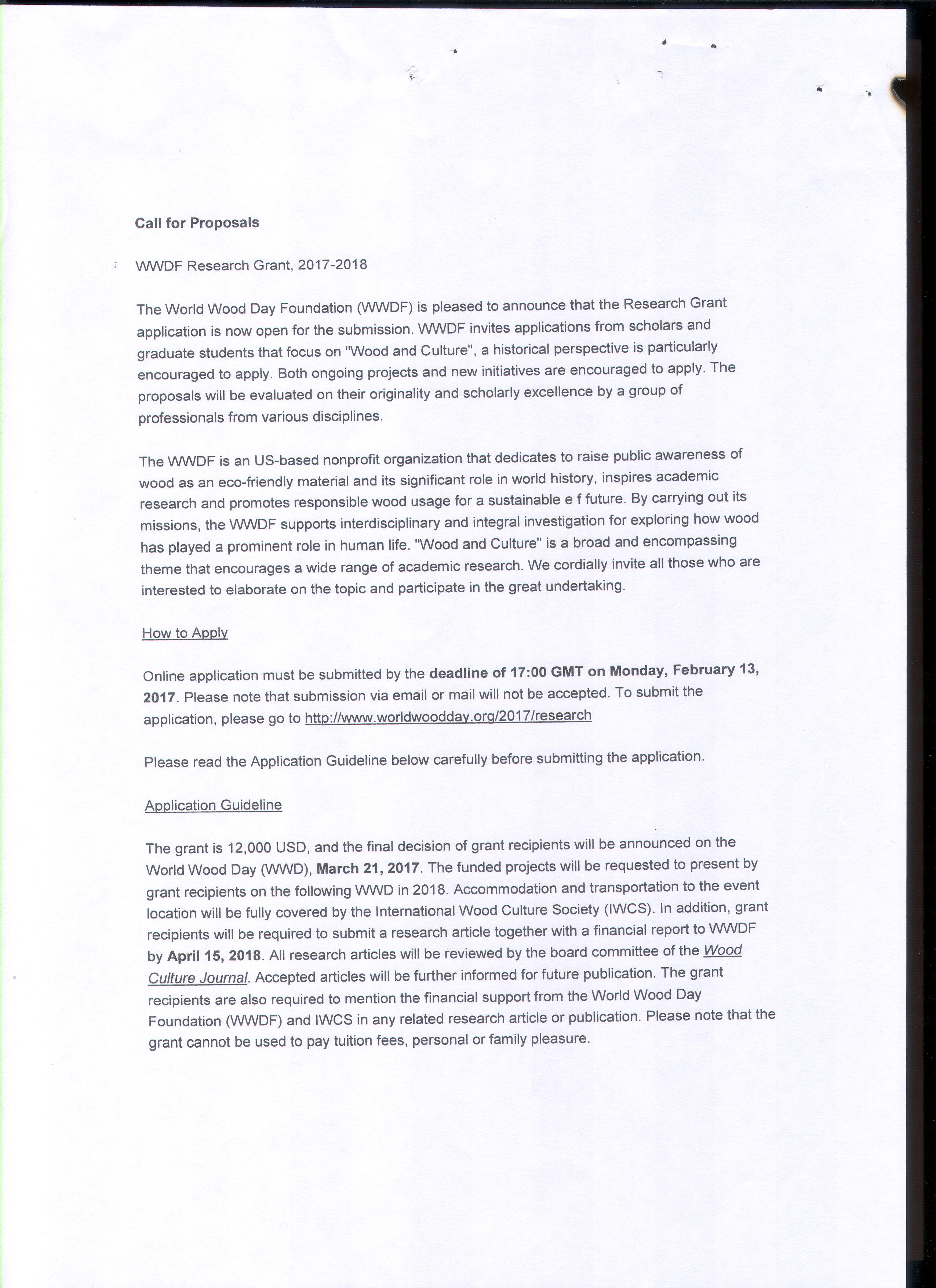 Please find attached the call for proposals for WWDF Research Grant, 2017/2018, the deadline for this call February 13, 2017