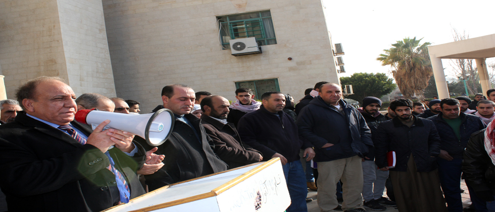 في وقفة تضامنية مع شهداء الوطن شهد اليوم الإثنين الموافق 19/12/2016 مشاركة الآلاف من طلاب وطالبات كلية الهندسة التكنولوجية / جامعة البلقاء التطبيقية يتقدمهم عميد الكلية الأستاذ الدكتور راتب حمدان العيسى ونوابه ومساعديه وأعضاء الهيئتين التدريسية والإدارية منددين بالجريمة النكراء التي ارتكبتها العصابة الإرهابية بحق شهداء الوطن ، وقف الجميع خلالها دقيقة صمت تبعتها قراءة الفاتحة عن روح شهداء الوطن.