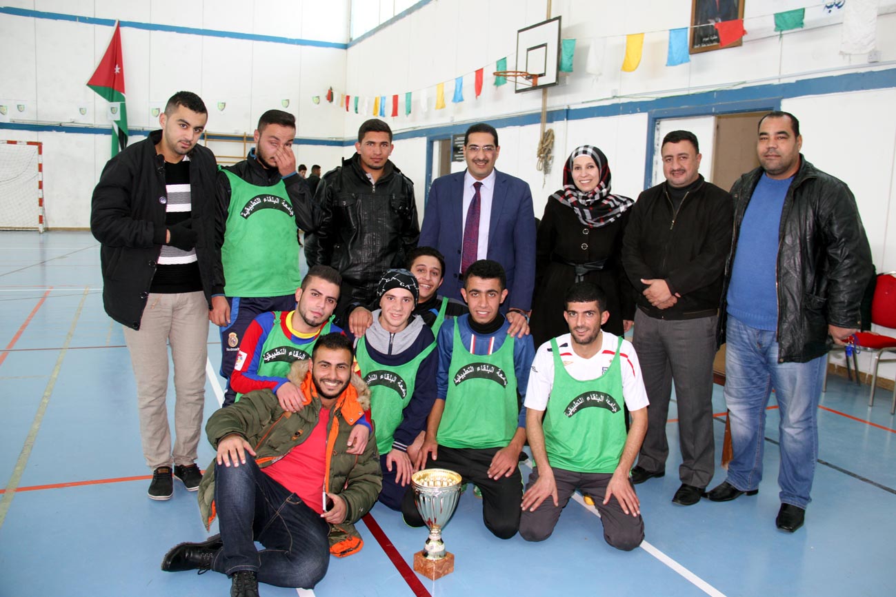 مندوبا عن عميد كلية السلط للعلوم الانسانية الاستاذ الدكتور ايهاب الغبيش رعى الدكتور سامي ابو رمان مساعد العميد للشؤون الطلابية ختام بطولة خماسي كرة القدم وذلك ضمن النشاطات اللامنهجية التي تقيمها الكلية للطلبة ، وقد اسفرت نتيجة اللقاء الذي جمع فريق تخصص الصيدلة وفريق تخصص الانتاج النباتي عن فوز فريق الصيدلة بنتيجة 3/1.