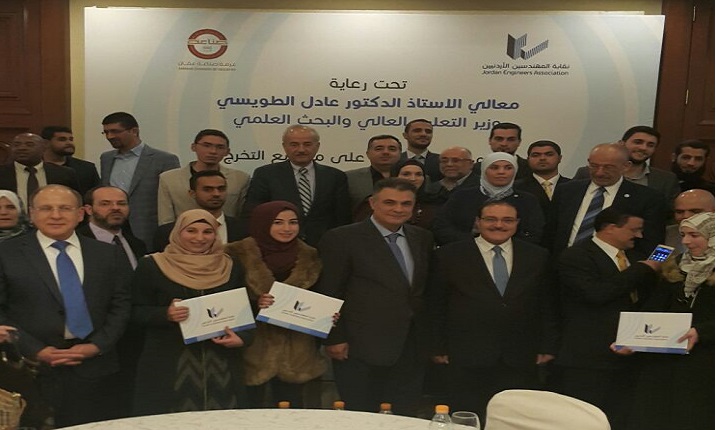 برعاية معالي وزير التعليم العالي والبحث العلمي أد عادل الطويسي جرى مساء السبت في فندق لاند مارك توزيع جوائز مشاريع التخرج السنويه للجامعات الاردنيه لعام 2016 المنعقد في القطاع الصناعي ومشاريع التخرج النقابيه وقد حصلت جامعة البلقاء التطبيقيه على المركز الأول في مسابقة مشاريع التخرج للمشاريع المنفذه في الصناعه في الهندسه الميكانيكية عن مشروع التخرج بعنوان (توفير الطاقه في المنشاءات الصناعيه وكان المشروع في (الشركه العربيه لتصنيع العبوات الطبيه) وهو من تصميم الطلبه