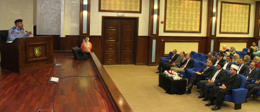 ألقى العقيد عمار القضاه مدير شرطة محافظة البلقاء محاضرة بعنوان (دور ومهام جهاز الامن العام ) في مدرج كلية السلط .