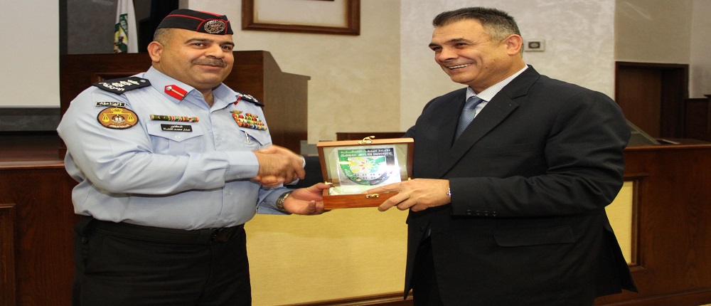 وفي نهاية المحاضرة سلم الاستاذ الدكتور عبدالله سرور الزعبي رئيس جامعة البلقاء التطبيقية درع الجامعة إلى العقيد عمار القضاه مدير شرطة محافظة البلقاء .