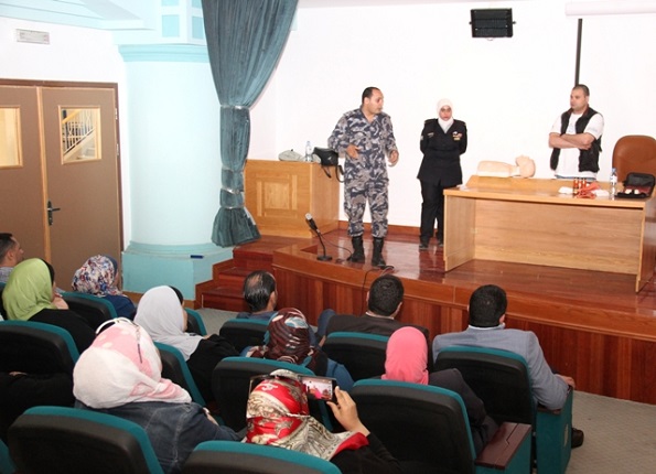 وقدم كل من الملازم البقور والرقيب الفاعوري جملة من الاجراءات الوقائية اللازمة والاسعافات الاولية والتي من شانها الوقاية في تجنب العديد من الحالات الطارئة بالاضافة الى عمل تطبيقات عملية حول كيفية التعامل مع الاصابات .