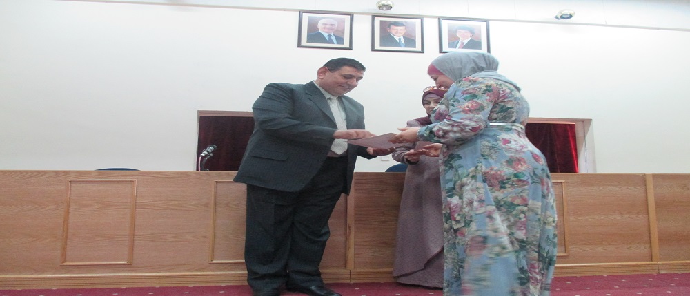وفي نهاية الحفل وزع مندوب عميد الكلية الشهادات على المشاركات في الدورة.