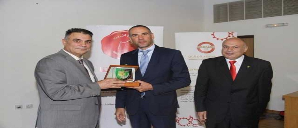 وقد سلم الأستاذ الدكتور رئيس الجامعة الدروع لمعالي وزير العمل السيد علي الغزاوي والمهندس موسى الساكت نائب رئيس غرفة صناعة عمان.