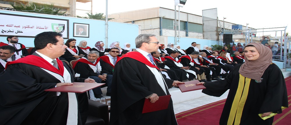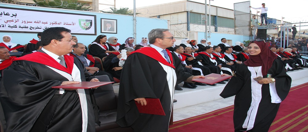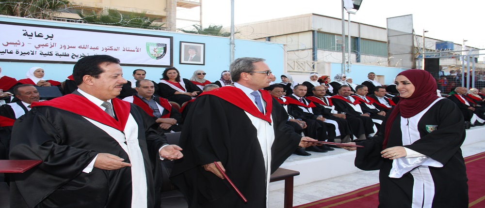 مندوبا عن الاستاذ الدكتور عبدالله سرور الزعبي رئيس الجامعة رعى الاستاذ الدكتور غاندي انفوقة نائب الرئيس للشؤون الاكاديمية فعاليات تخريج طالبات كلية الاميرة عالية الجامعية  من حملة الشهادة الجامعية الاولى  البكالوريوس والشهادة الجامعية المتوسطة ( الدبلوم ) بحضور الاستاذ الدكتور محمد السويلمين عميد الكلية واعضاء الهيئة التدريسية فيها وجمع غفير من ذوي الطلبة.