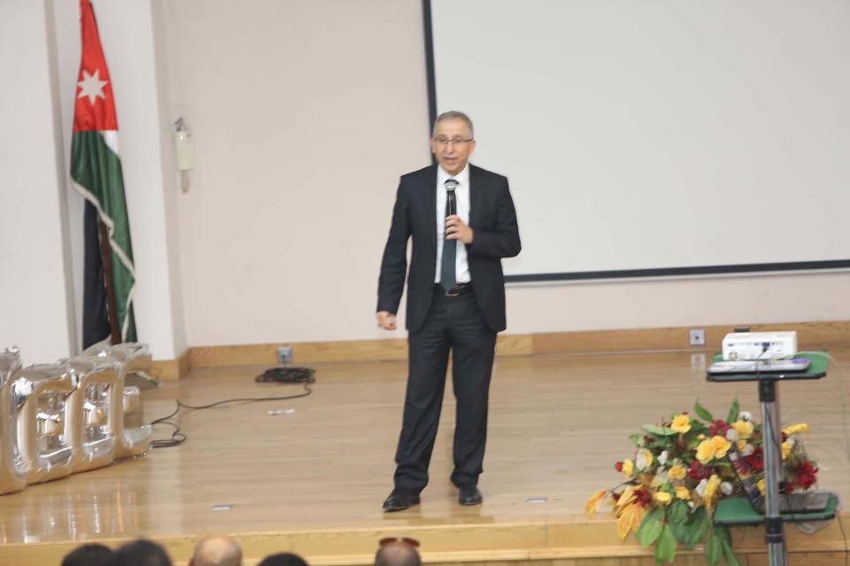 كما القى رئيس الجمعية في الاردن الاستاذ الدكتور غيث عبندة كلمة اختصر من خلالها تساؤلات الكثير عن الجميعة بشكل عام و الاحتفال في هذا اليوم بشكل خاص و ما له من دور ايجابي لاحياء ذكرى تركت الاثر الكبير في الكثير من الاختراعات و الابداعات العلمية التي لا نستطيع العيش دونها في هذه الايام .