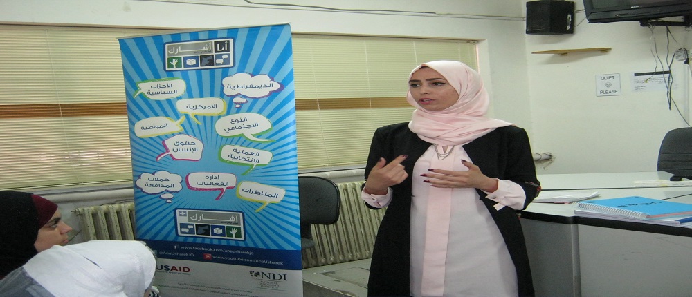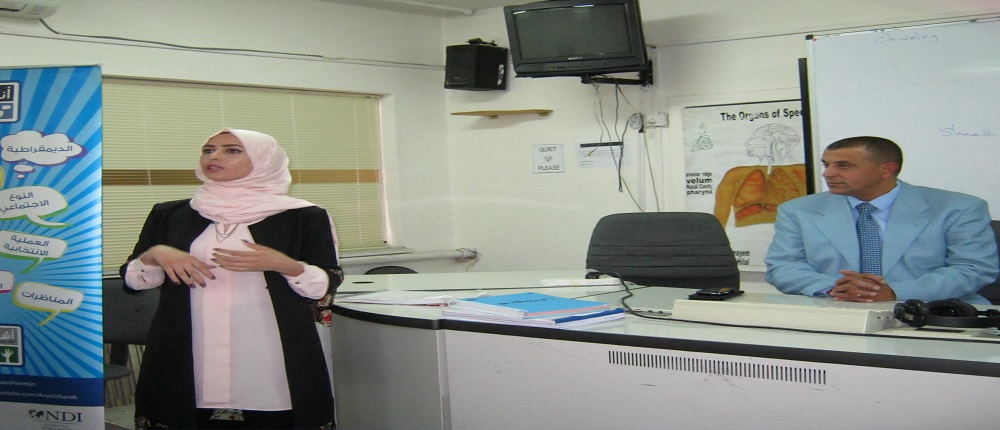 رعى عميد كلية الأميرة عالية الجامعية الأستاذ الدكتور باسم اللوزي وبالتنسيق مع مساعد العميد للشؤون الطلابية الدكتورة منى ابو طه نشاطاً بعنوان (أنا أشارك) وذلك بالتعاون بين عمادة شؤون الطلبة / صندوق الملك عبدالله الثاني للتأهيل الوظيفي والمعهد الديمقراطي الوطني للشؤون الدولية NDI أدارته منسقة البرنامج حنين المفلفل.