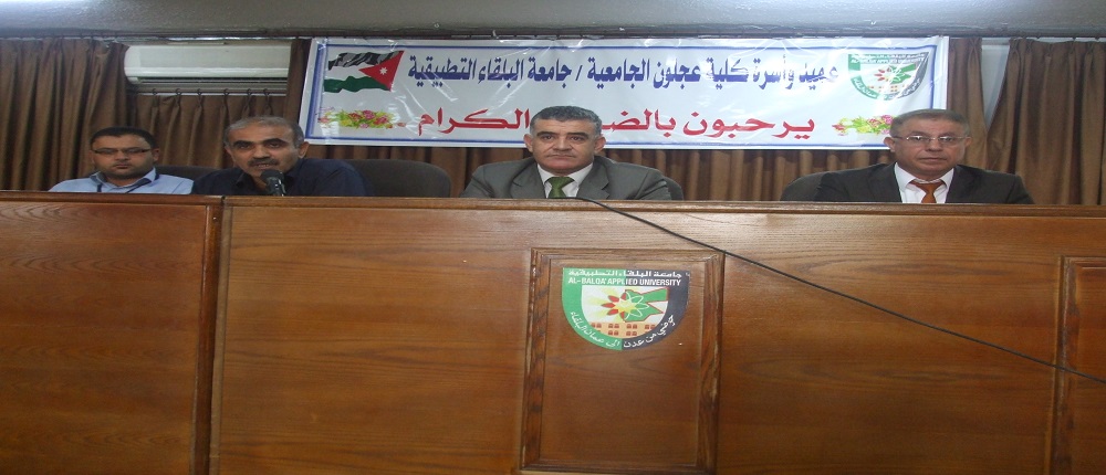 وفي بداية اللقاء الذي أدارته الدكتورة أمل العمري رحب الاستاذ الدكتور نضال الاحمد بالطلبة المستجدين في الكلية مباركا لهم نجاحهم في الشهاده الثانوية وقبولهم في كلية عجلون الجامعية / جامعة البلقاء التطبيقية ونقل عميد الكلية تحيات الاستاذ الدكتور عبد الله سرور الزعبي /رئيس الجامعه للطلبة المستجدين وهنأهم على التحاقهم بالجامعه وانضمامهم لأسرة جامعة البلقاء التطبيقية منوها الى ان مكتب عميد الكلية مفتوح امام الطلبة لحل اي معضلة تواجهم بعد مراجعتهم لرئيس قسمهم الاكاديمي