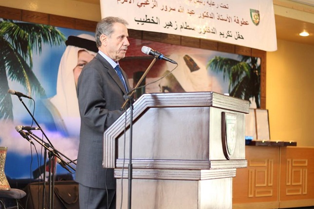 تكريماً لعميدها السابق الدكتور سطام الخطيب في قاعة الاحتفالات في الكلية، حيث أكد عميد الكلية الدكتور عودة سليمان مراد على مسيرة الانجاز والعطاء التي شهدتها الكلية خلال فترة وجود عميدها السابق الدكتور سطام الخطيب، وأكد مراد أن العمل الجاد الذي يصب في خدمة الوطن والمواطن هو المقياس الحقيقي والمؤشر الأبرز للولاء والانتماء لهذا الوطن وقيادته الهاشمية .