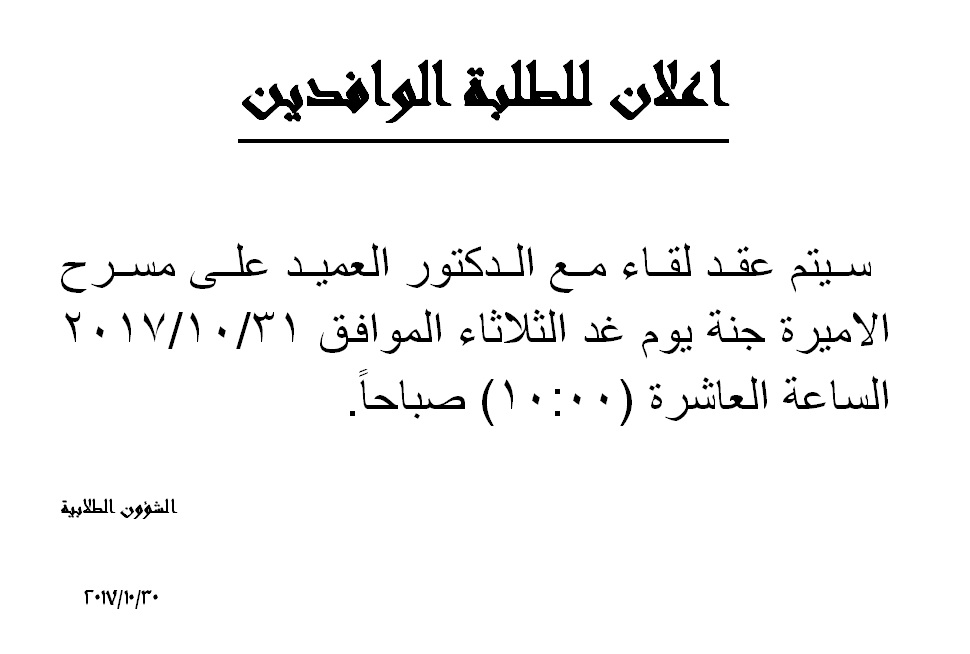 إعــلان هــام لطلبة جامعة البلقاء التطبيقية بواسطة