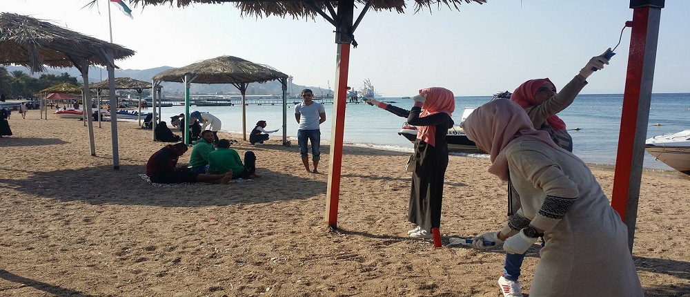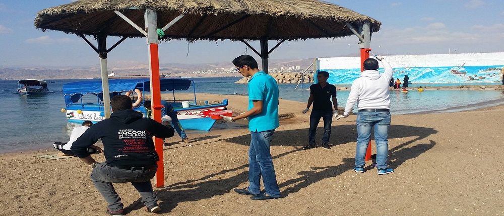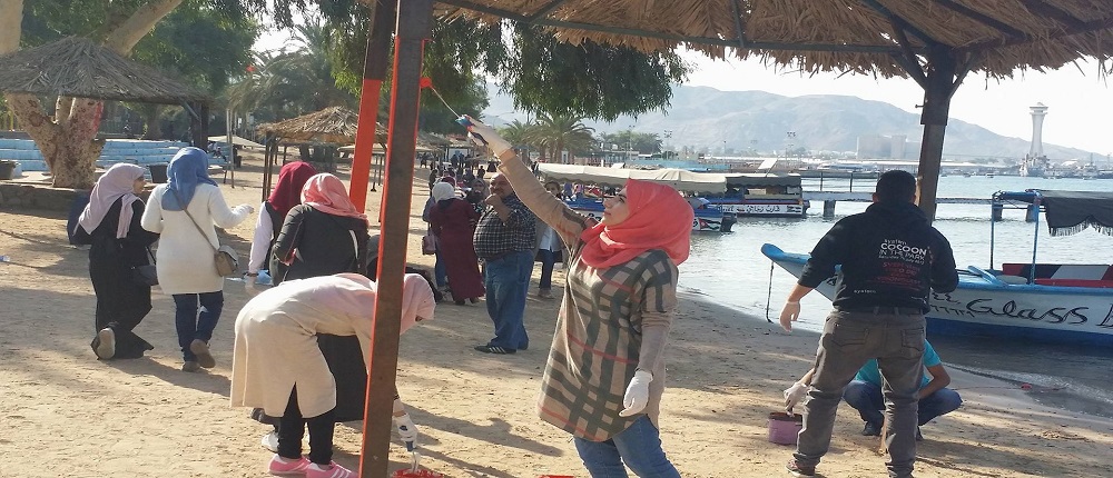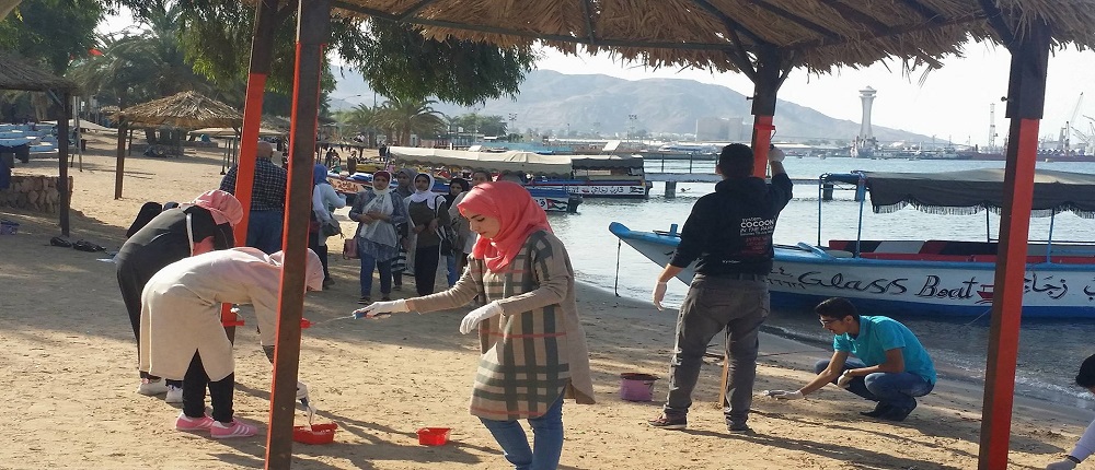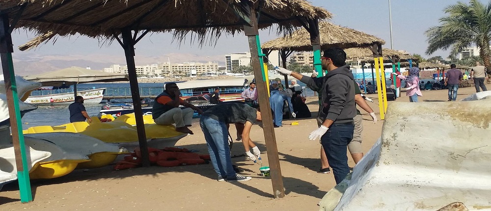في إطار الأنشطة التي تقوم بها كلية العقبة الجامعية الجامعية لاظهار الوجه الحضاري والسياحي لمدينة العقبة وتحت رعاية الدكتور بندر ابو تايه عميد كلية العقبة الجامعية وبحضور المهندس خالد العضايلة مسؤول شاطئ الغندور والدكتور مساعد العميد للشؤون الطلابية ومن خلال طلبة كلية العقبة الجامعية تم تنفيذ مبادرة تزين ودهان مظلات شاطئ الغندور الشعبي بألوان جذابة زادت المكان رونقاً وجمالا ً .