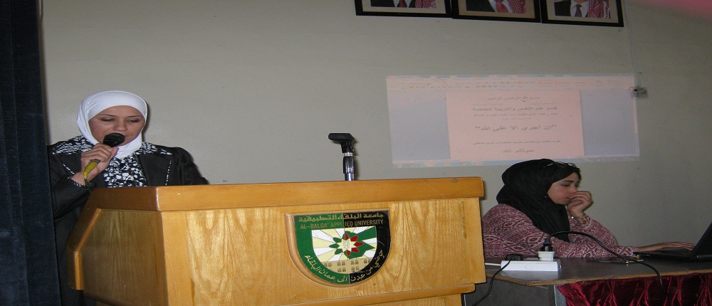 رعى عميد كلية الامـيرة عالية الجامعية الأستـاذ الدكتور باسـم الـلوزي نـدوة حـوارية بـعنوان (إن اجري الا على الله ) وذلك بالتنسيق مع رئيس قسم علم النفس والتربية الخاصة الدكتورة صيدا العدوان ألقتها الدكتورة عرين المجالي.