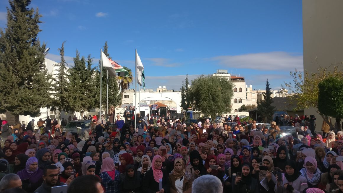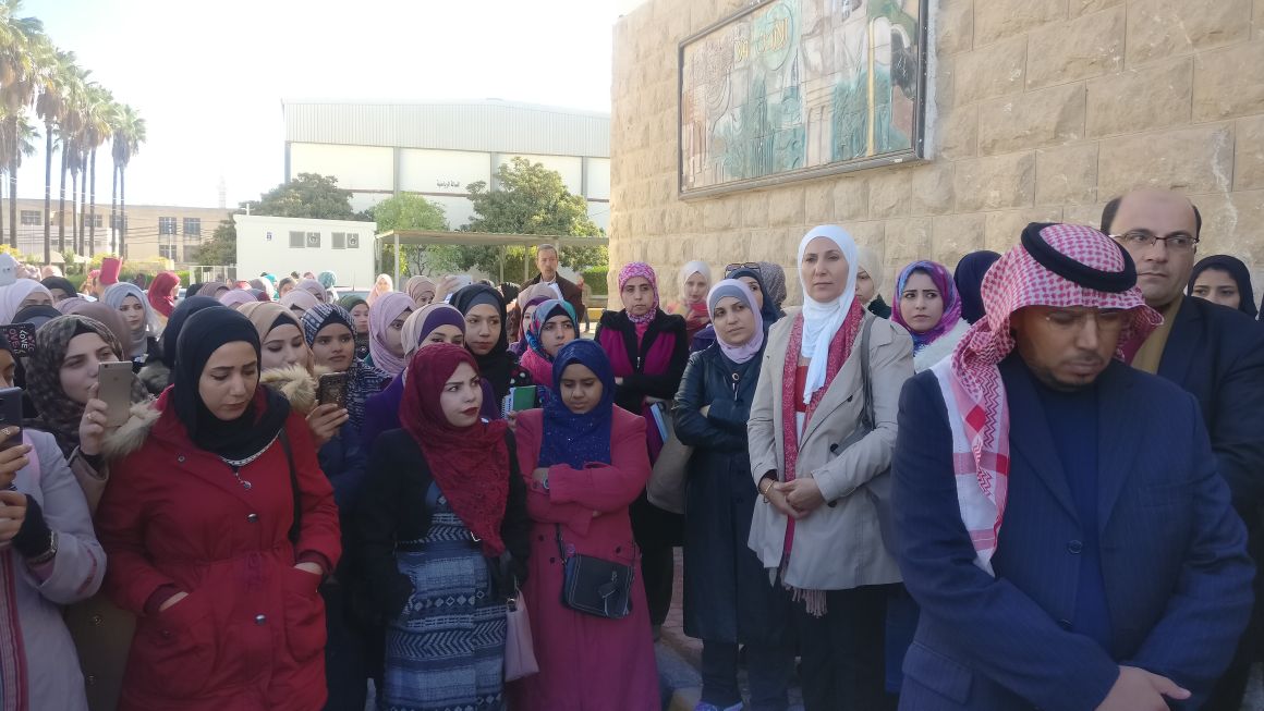 وتخلل الوقفة قصائد شعريه وكلمات تأييد تضامناً مع أهلنا في القدس ودعماً لصمودهم قدمها أعضاء الهيئة التدريسية والإدارية وطلبة الكلية.
