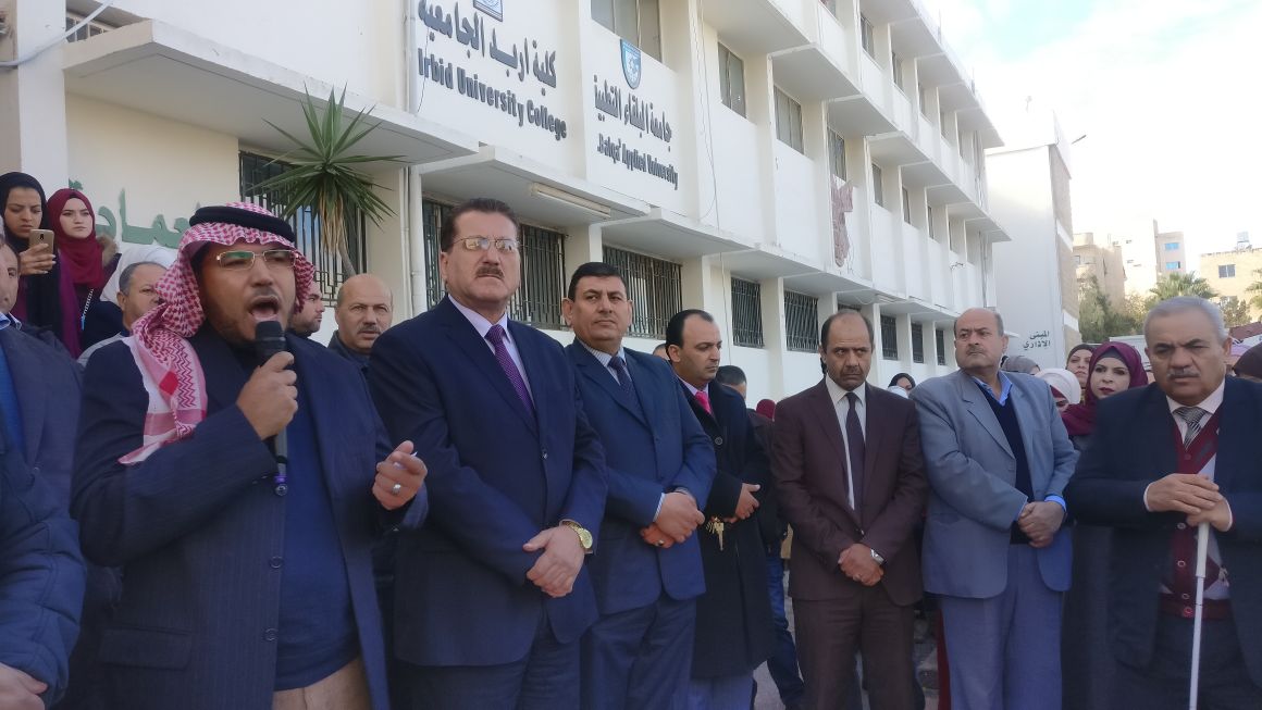 أقامت كلية اربد الجامعية وقفه تضامنية من أجل القدس شارك فيها عميد وأسرة الكلية وطلبتها ، وتأتي هذه القفه دعماً رمزياً لأهلنا في القدس.