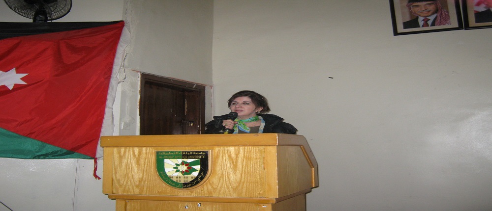 حيث استهلت بالسلام الملكي فكلمة ترحبيه من قبل مساعد العميد للتدريب والتطوير الدكتورة منى الصمادي رحبت فيها بالهيئتين التدريسية والادارية والطالبات . اثنت  فيها على  دور الدكتورة منار الطوالبه واهتماماتها لإيجاد طرق تطوير العملية التربوية وذلك بوضع اهداف استراتيجية تعليمية من اجل تحقيق هده الأهداف  فلا بدّ من وجود رابط اساسي بين المعلم والطالب .