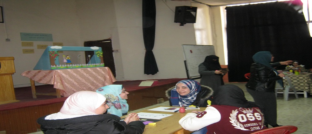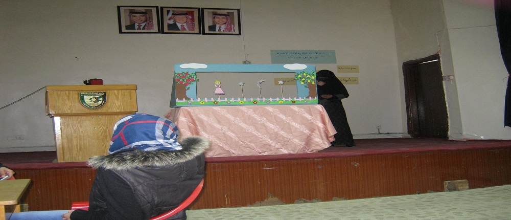 وقد قامت الدكتورة الطوالبة بتقديم نموذج عن استرتيجية التعليم من خلال الطالبات وذلك بعرض اسكتش تمثيلي يوضح الطرق والاساليب الحديثة للتعلم التعاوني من خلال استخدام وسائل تعليمية مثل المسرح واللعب وورشات عمل جماعية لمعرفة القدرات الفرديه للطالب.