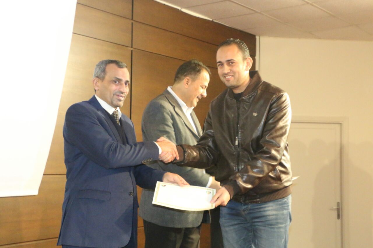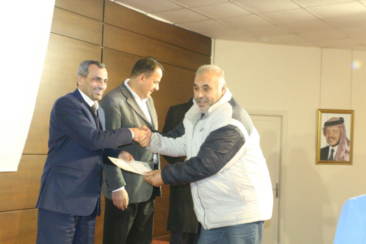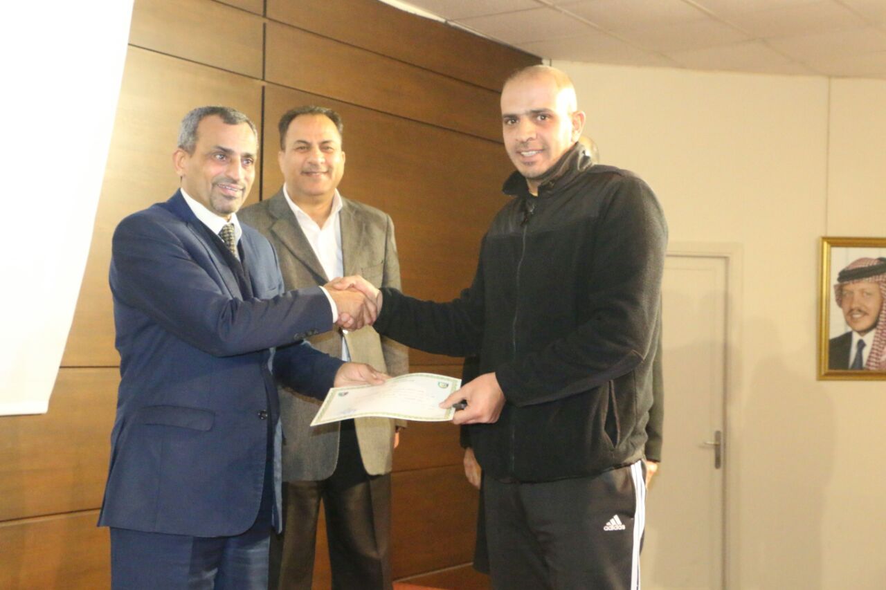 مساعد عميد كلية عمان وعضو الهيئة الإدارية للاتحاد الرياضي للكليات والدكتور أحمد العواملة مدير النشاط الرياضي في جامعة البلقاء التطبيقية وأمين سر الاتحاد الرياضي للكليات والسيد خالد عربيات رئيس قسم النشاط الرياضي للكليات الجامعية
