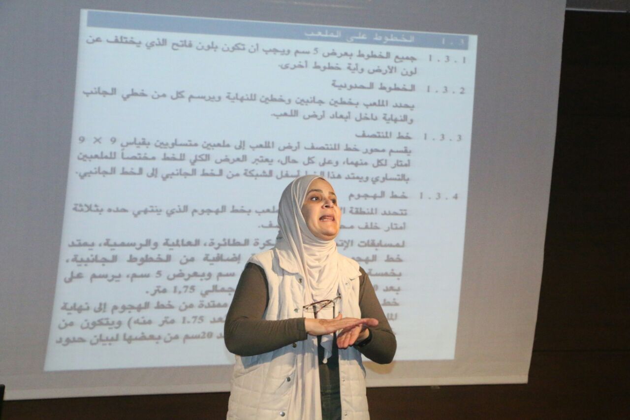 ومن جانب آخر تفاعل المشاركين بالدورة ومن المحاضرين الدكتوره منال طه رئيس لجنة الحكام بالاتحاد الأردني للكرة الطائرة والأستاذ وليد النجار من لجنة الحكام حيث تم شرح مواد قانون الكرة الطائرة النظري والعملي . ولقد شارك في الدورة ثمانية وعشرون مشرف ومشرفة رياضية، وفي نهاية الدورة قام الدكتور نعيم القاضي بتسليم الشهادات على المشتركين ولقد حضر الدورة الدكتور نضال الغفري